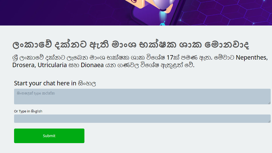 Prompt in Sinhala: “What are the carnivorous plants seen in Sri Lanka?