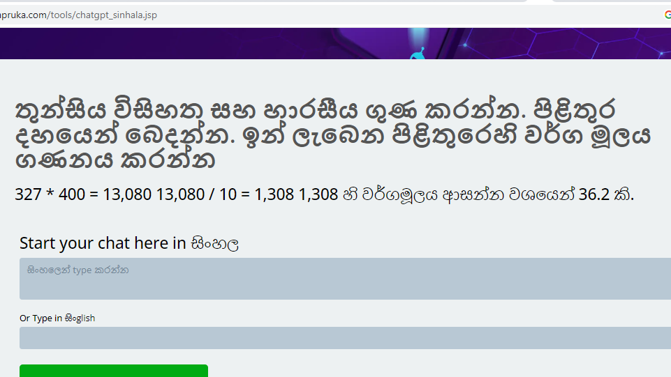 As shown in the previous article Kapruka.com’s Sinhala ChatGPT (at https://www.kapruka.com/tools/chatgpt_sinhala.jsp) performs better in Sinhala language conversational processing in comparison to OpenAI ChatGPT’s Sinhala language processing (naturally!).