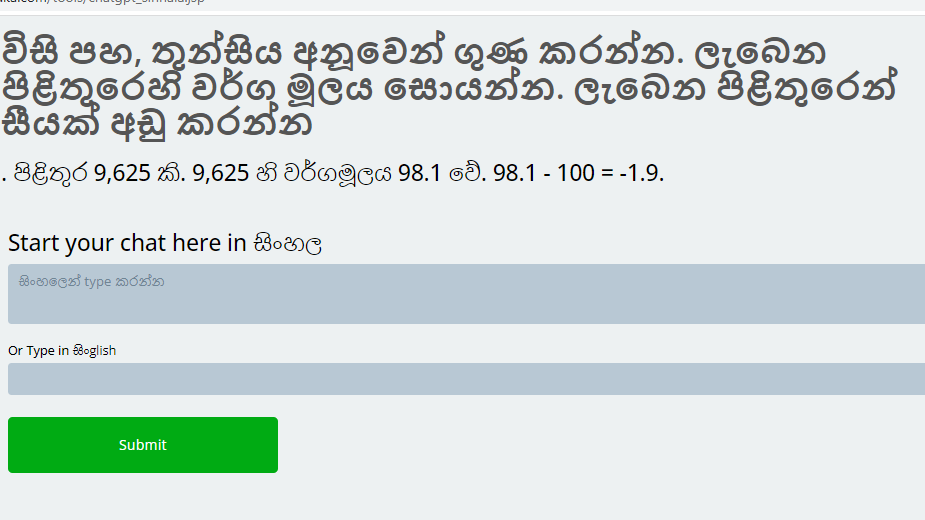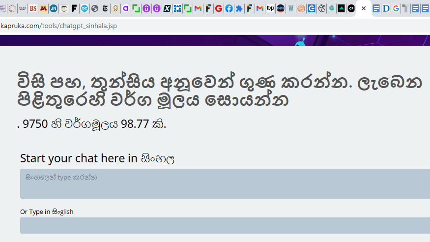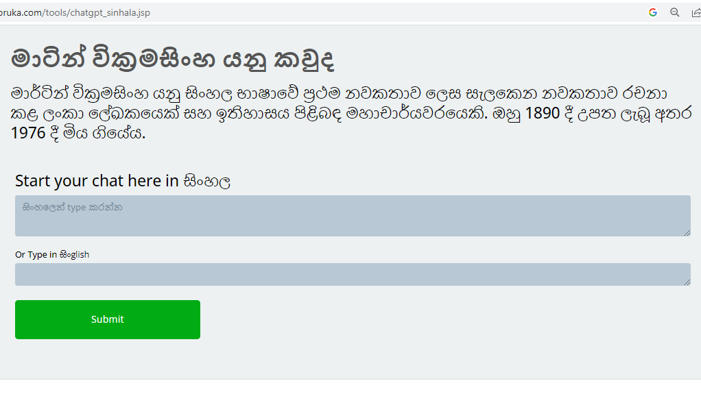 In the previous “tests”, Kapruka responded to prompts designed to measure theoretical ideas -and it appeared to do reasonably well. It handled dialogues about various concepts (though somewhat artificially), which could help it to play the role of a school teacher. At present, Kapruka may not be able to ‘’çover’’ a school syllabus in the[1] Sinhala language fully, but some “test-[2] prompts” showed it could well be a useful learning aid to local Sinhala language students.